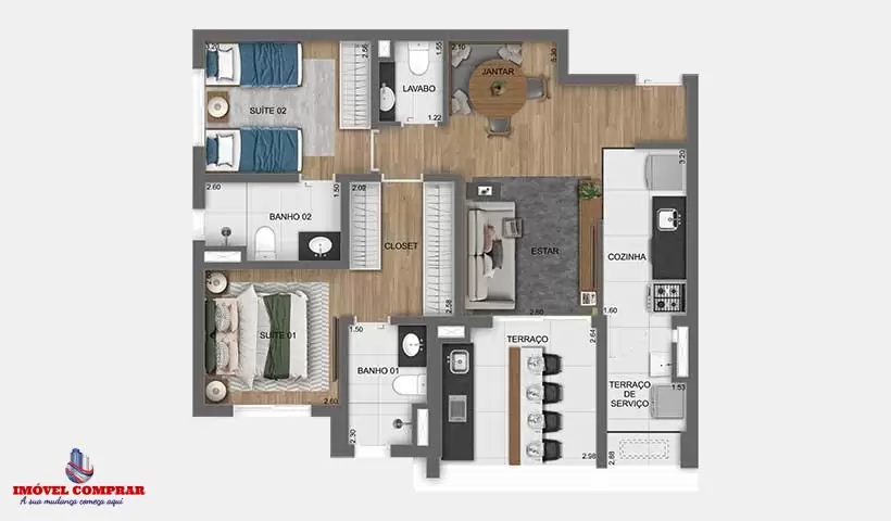 Dormitórios: 2 (2 Suítes)