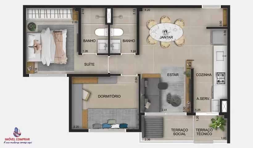Área Útil: 72m²